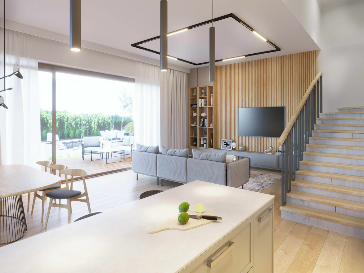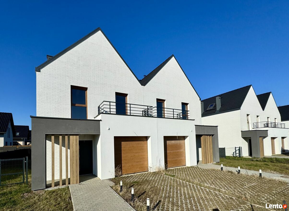 Oferujemy na sprzedaż nowoczesny dom w zabudowie bliźniaczej o powierzchni 107 m², w tym garaż o wielkości 16,59 m².